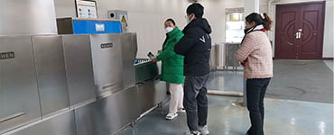 旭申長龍式洗碗機的工作原理是首先餐具固定在斜插式輸送帶上通過預(yù)洗區(qū),機器會自動拉入碗碟到達預(yù)洗缸內(nèi)。先用高壓、密集的噴射水流,溫度在50-60度的熱水混合專用的洗滌劑沖洗餐具,使餐具達到清潔的目的。